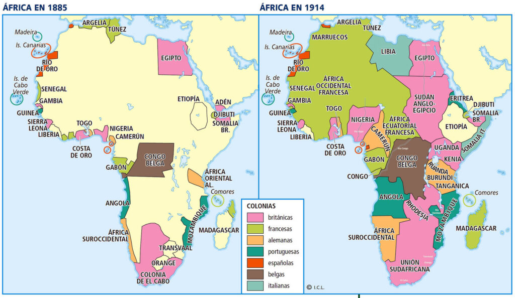 Así se lanzaron a la carrera por ocupar territorios, primero en los puntos clave de la costa africana, como llevaba haciendo Portugal desde el siglo XVI, pero ya reducida a una potencia de tercer nivel, al igual que España que terminó de perder sus últimas colonias tradicionales ante Estados Unidos en 1898.