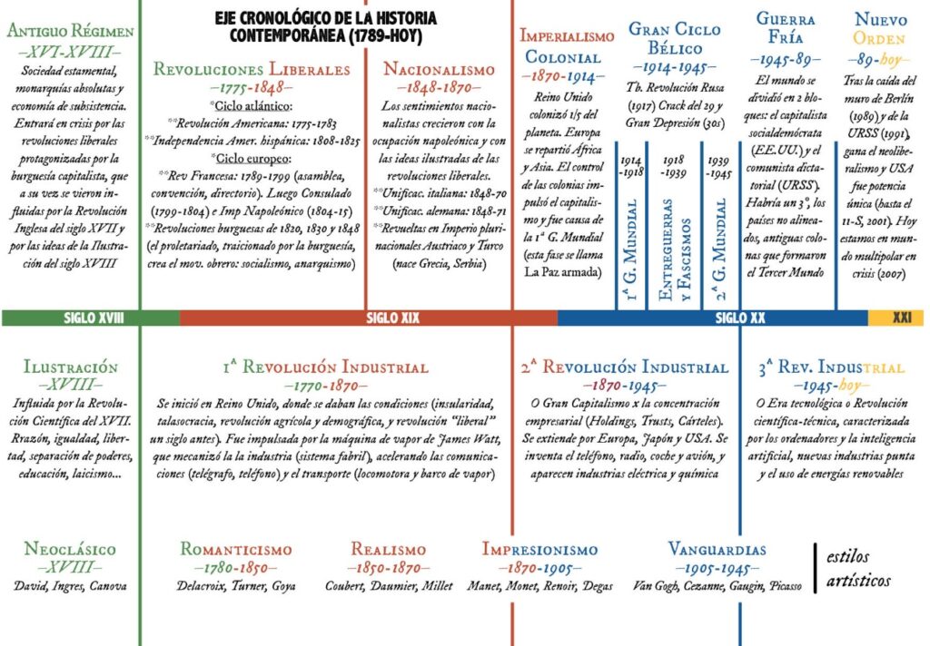 Destaca el papel fundamental de la época victoriana de Reino Unido, la Francia de Luis Napoleón III y la Belle Époque, o la recién unificada Alemania bajo el tenaz gobierno de Otto von Bismarck. Además, debemos tener en cuenta los grandes imperios multinacionales como Austria (Austria-Hungría desde 1867), el Imperio Ruso, el Imperio Otomano (ya en decadencia). Además, en el marco de la Segunda Revolución Industrial surgirán dos Estados que competirán con los principales Estados europeos por la hegemonía internacional: Japón con una evolución meteórica desde la Revolución Meiji, y los Estados Unidos de América superada la Guerra de Secesión (1861-1865) y su Doctrina Monroe que les reservaba todos los derechos económicos del continente americano.